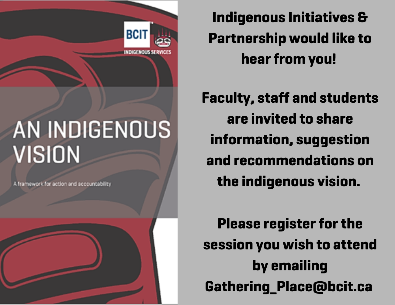 Please register for the session you wish to attend by emailing Gathering_Place@bcit.ca