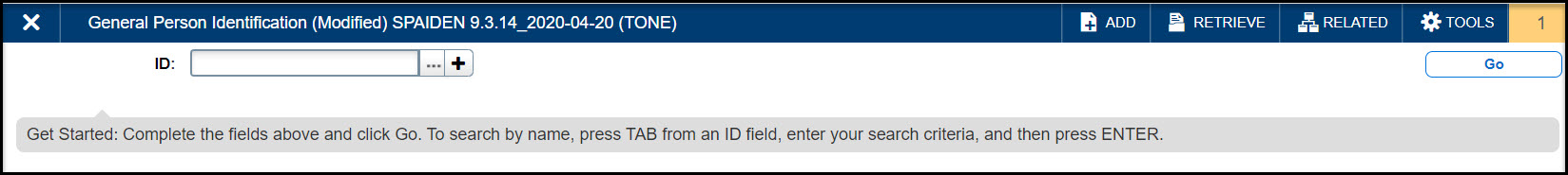 TIP:When you are in the key block and all you see is an id field, press the Tab key, and this will allow you to enter a name search.