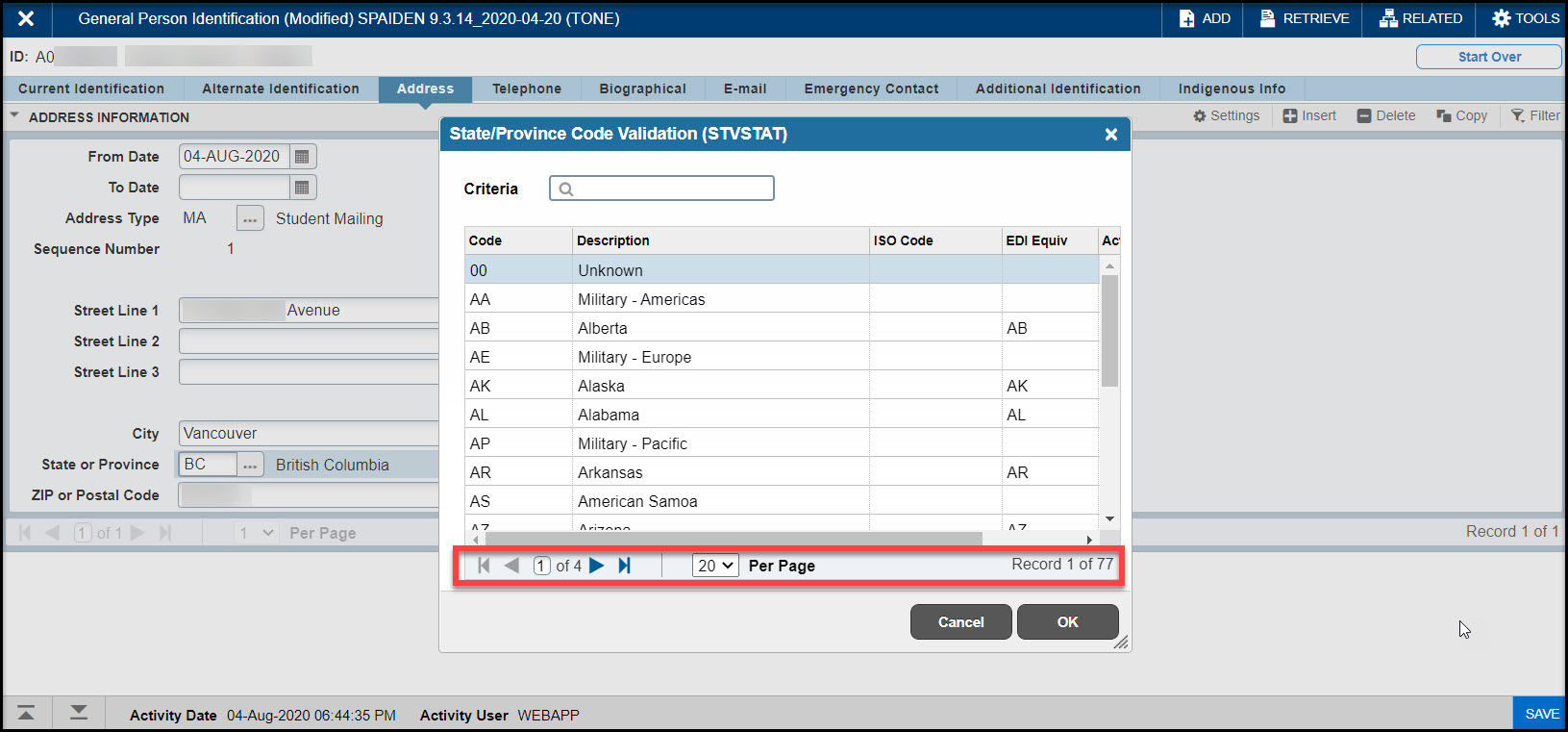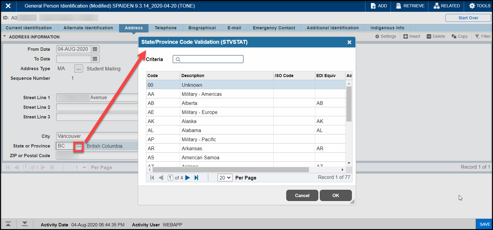 TIP: When utilizing the Lookup option, you can perform either exact match lookups or partial match lookups when some of the information is unknown. To perform a partial match lookup use a “%” to replace the unknown information. For example, when searching for a student with an incomplete ID number enter the known information as A0055%47%.