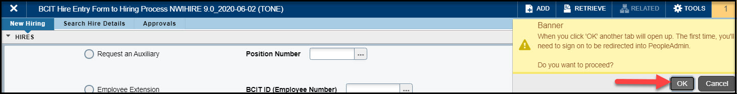 - Click BCIT Hire Entry Form to Hiring Process (NWIHIRE).