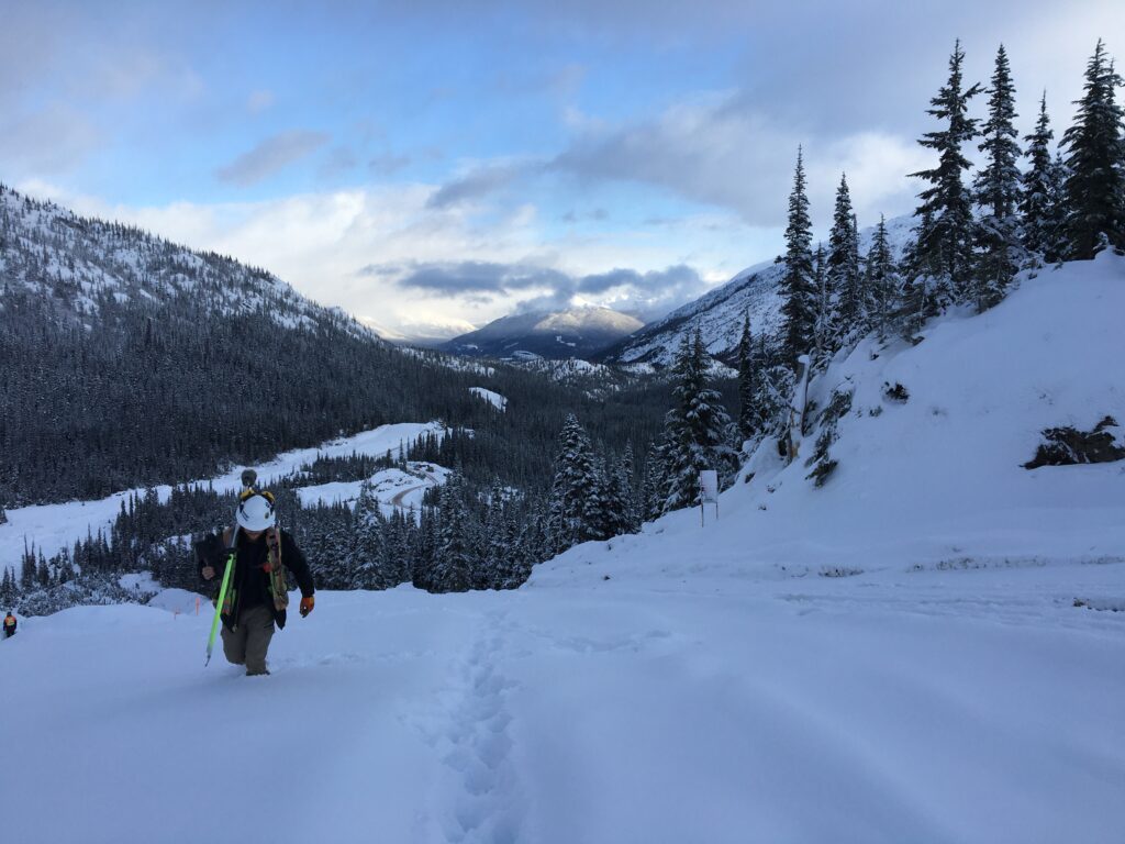 Some of Sean’s most memorable experiences came in the field—working in icy mountain passes, wading into lakes to set drone targets, capturing natural boundaries along the Okanagan Lake, and flying by helicopter to flag right-of-ways in Northern BC.